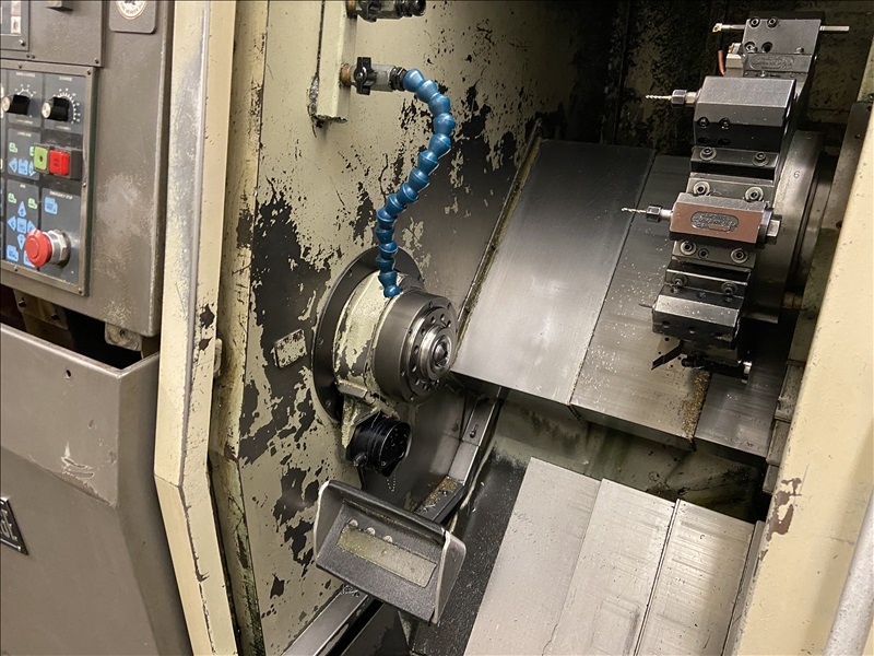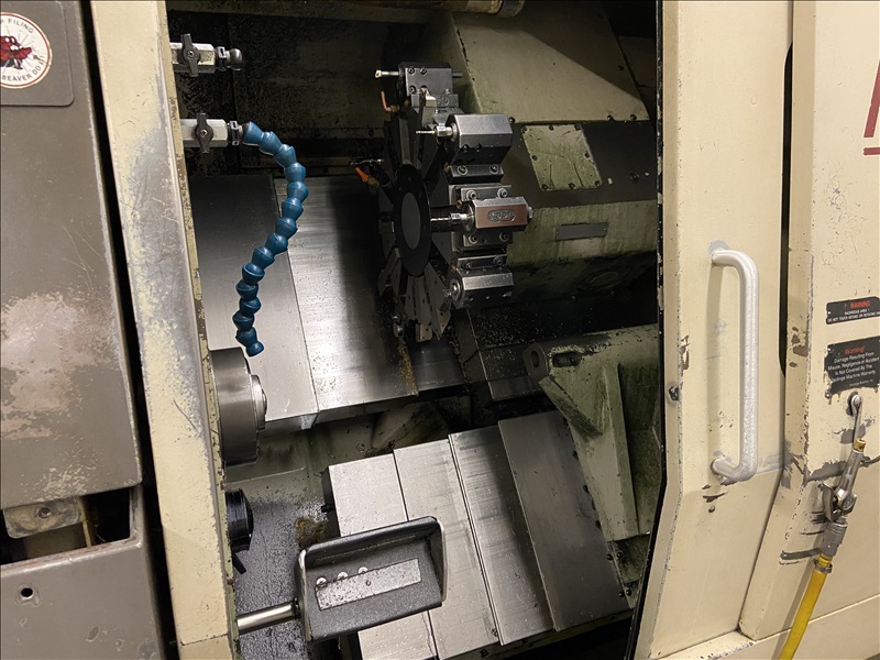 CNC LATHE TURNING CENTER W/12 CHUCK TOOL HOLDER, TURBO CHIP FEEDER, GE FANUC SERIES 18-T CONTROLS,; 17.5 KW, 230V, 3-PH