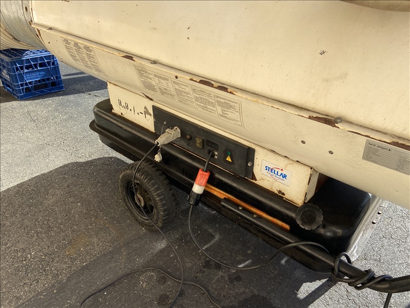 INDIRECT-FIRED PORTABLE FORCED-AIR DUCTABLE DIESEL OR KEOSINE DUAL-FUEL HEATER W/VENTED HEAT EXCHANGER, DUCTING, DIFFUSER, 110V
