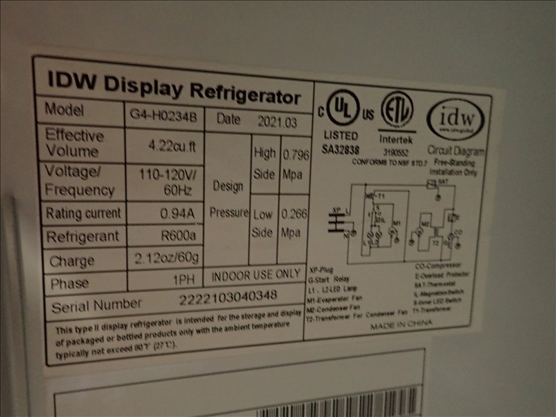 4.22 CU/FT 18" SINGLE DOOR REFRIGERATOR, 110/120V