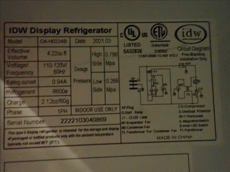 4.22 CU/FT 18" SINGLE DOOR REFRIGERATOR, 110/120V