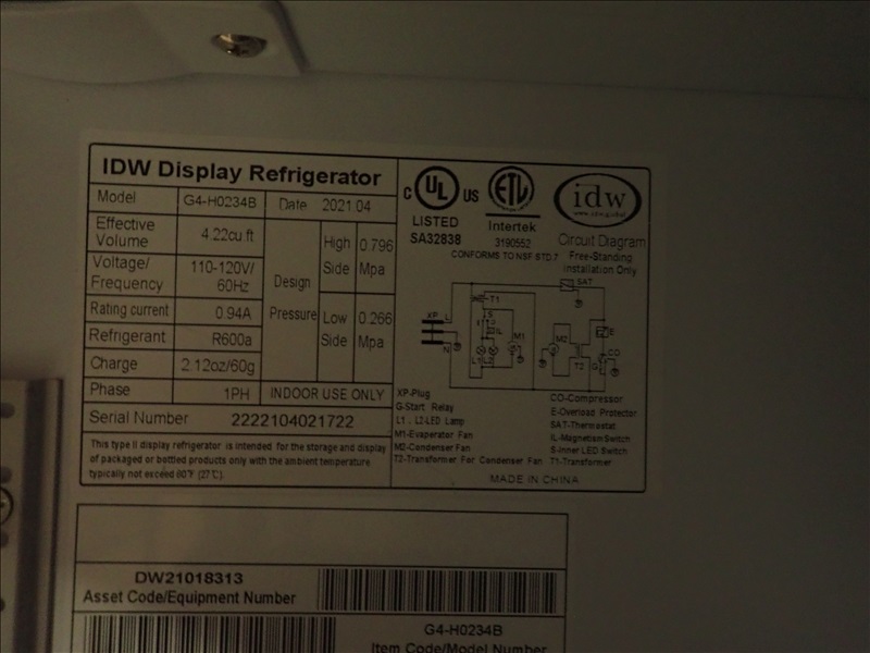 4.22 CU/FT 18" SINGLE DOOR REFRIGERATOR, 110/120V