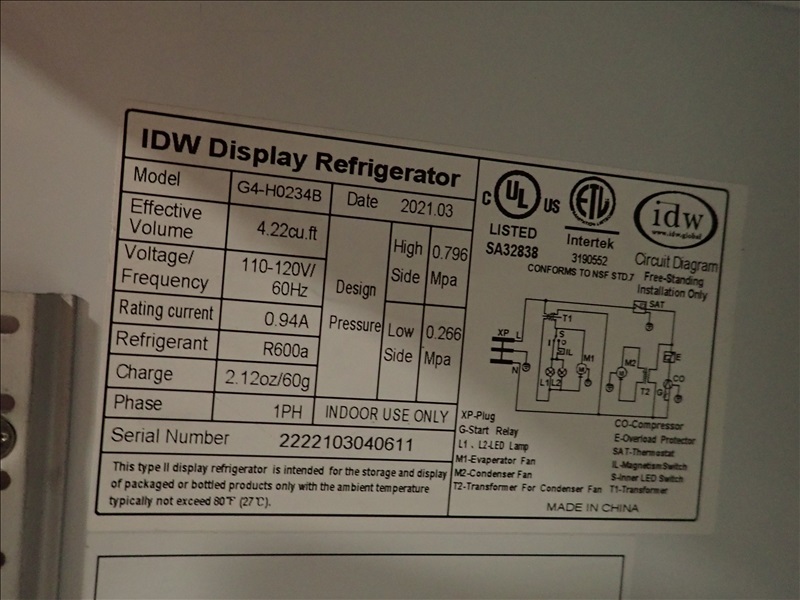 4.22 CU/FT 18" SINGLE DOOR REFRIGERATOR, 110/120V