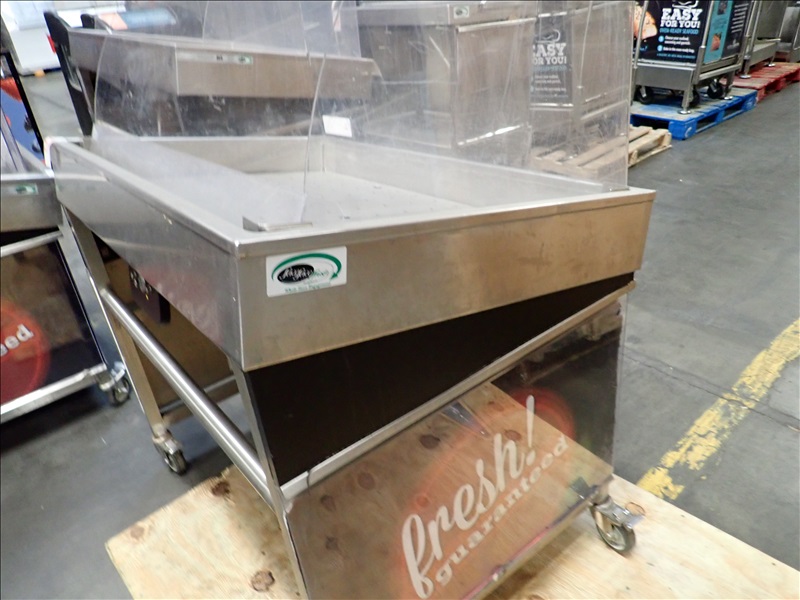 SS 46"X32" ANGLED SEAFOOD MERCHANDISER ON CASTERS W/CUSTOM BUILT RAMP DOOR CRATE