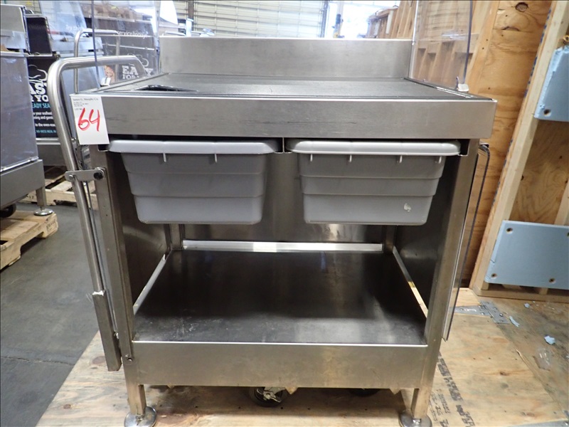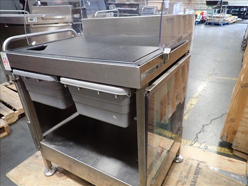 SS 35"X28" POLY TOP PORTABLE PREP STATION ON CASTERS W/CUSTOM BUILT RAMP DOOR CRATE