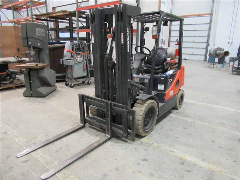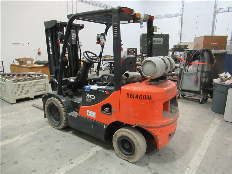 5,500LB CAP. CUSHION TIRE FORKLIFT, PROPANE, 3-STAGE, MAST, SIDE SHIFT, S/N: FGA09-1330-01563, HRS: 2,604
