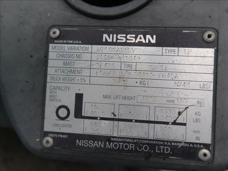 FORKLIFT, PROPANE, S/S, 3-STAGE MAST, 187" CAP LIFT HEIGHT, 4,050LB CAP