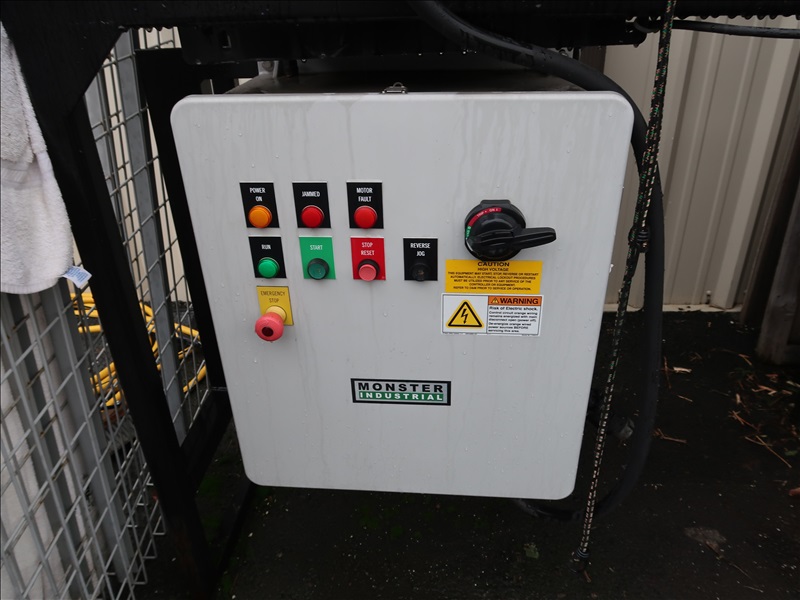 INDUSTRIAL SHREDDER/GRINDER, BALDOR 25HP MOTOR, MONSTER INDUSTRIAL ELECTRICAL PANEL, ALLEN BRADLEY EMERGENCY STOP