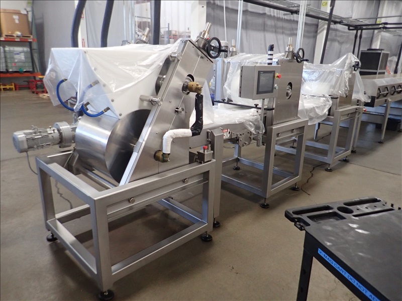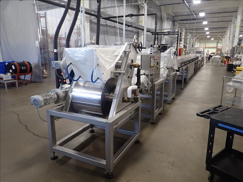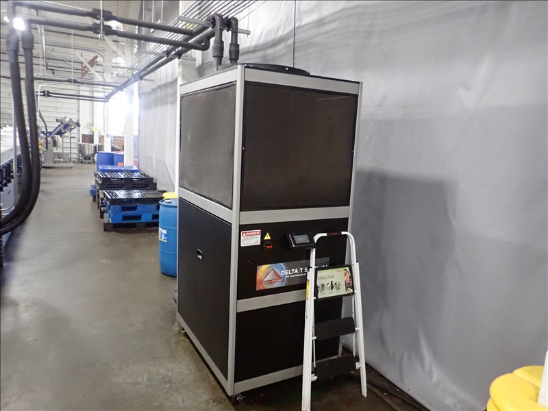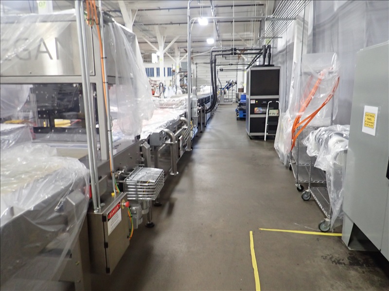 SLAB LINE TO INCLUDE 2020 EGEN 19" CHILLED ROLLER FORMING PRESS, PRE-SIZED ROLL, SECOND SIZING ROLL, TRANSFER CONVEYOR, 30' COOLING TUNNEL, ROLLER CUTTER, STRING TRANSFER CONVEYOR, BAR GUILLOTINE CUTTER, OUTFEED CONVEYOR, SCHNEIDER MAGELIS CONTROLS, DELTA T SYSTEMS VSPA-015 CHILLER, FEYEN ELECTRICAL PANEL, SPARE DIES, TOOLING & ACCESSORIES