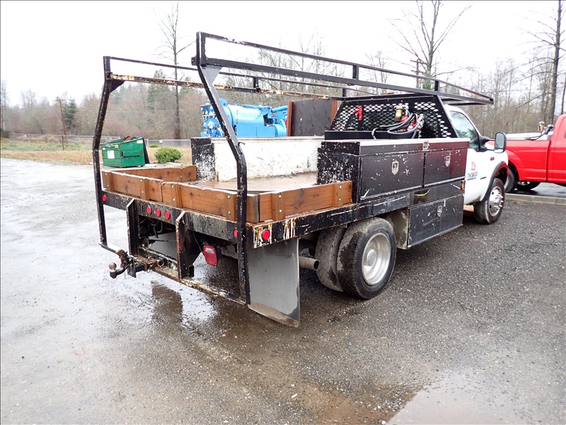 FLATBED UTILITY TRUCK, POWER STROKE 7.3L, AUTO, 12' BED W/RACK, TOOLS BOXES, AUX FUEL TANK W/PUMP