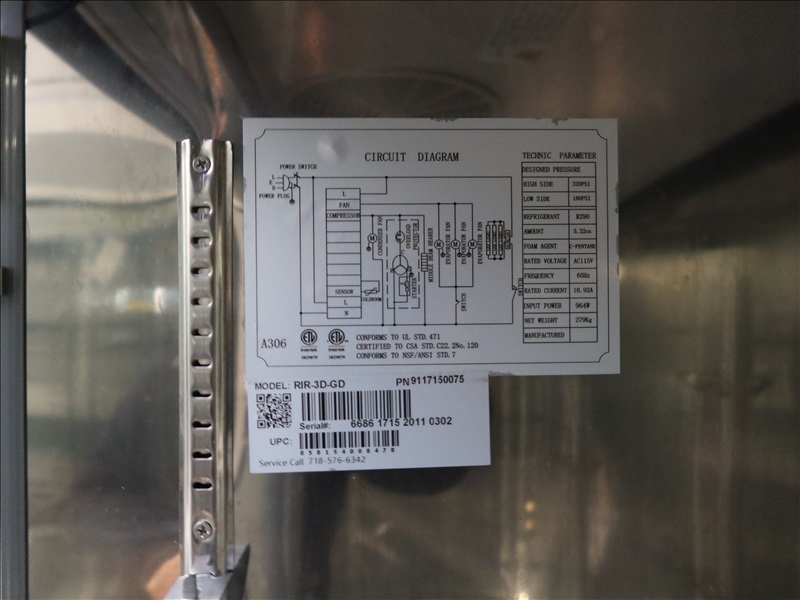 3 GLASS DOOR S/S REFRIGERATOR ON CASTERS