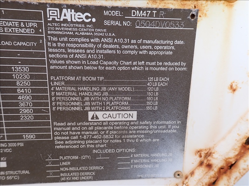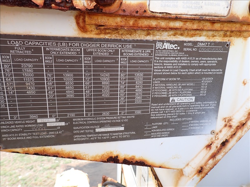 S/A DIGGER DERRICK TRUCK, DT466, AUTO, ALTEC DM47TR, POLE CLAMP, WINCH