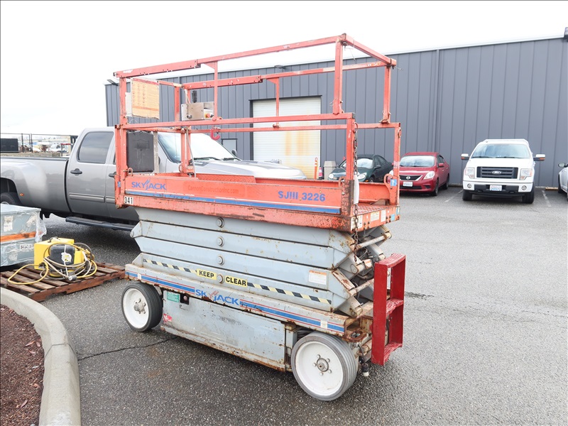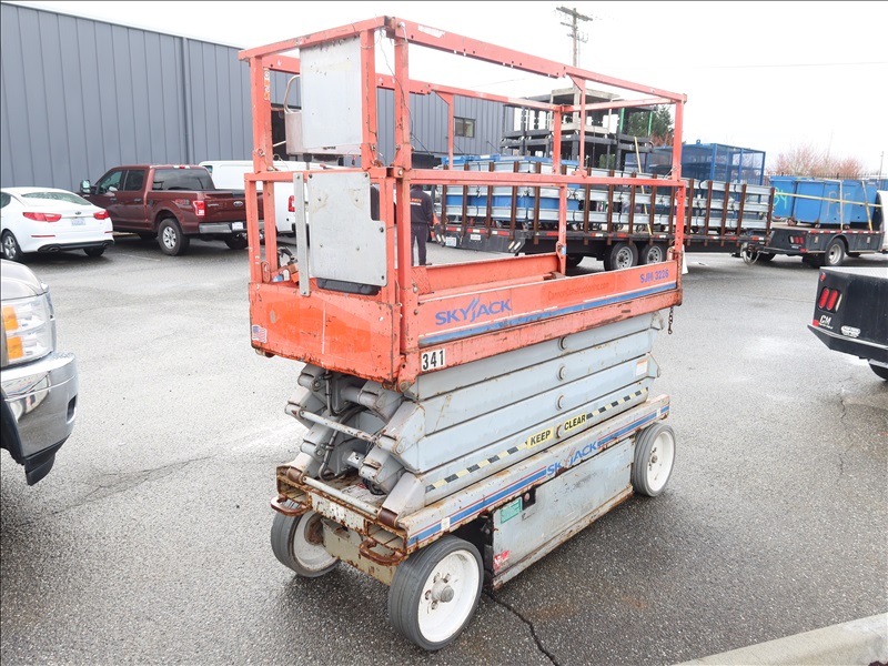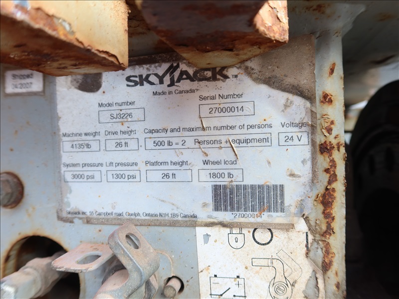 500 LB CAP ELECTRIC SCISSOR LIFT, 26' DRIVE HEIGHT, 24V, HOURS UNKNOWN
