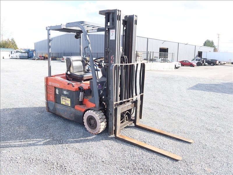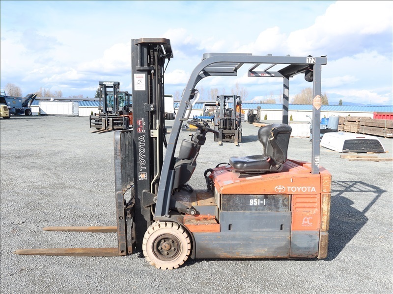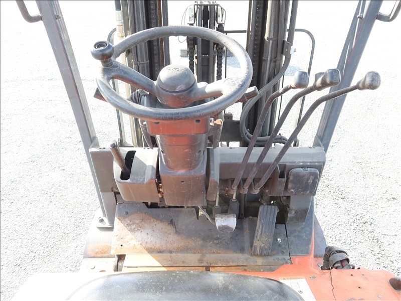 ELECTRIC CUSHION TIRE FORKLIFT, SHUTTLE TRANS, 3-STAGE MAST, SIDE SHIFT W/C&D TECH FERRO 1500 36V BATTERY CHARGER, 208-240/480V, HOURS UNKNOWN (DEAD BATTERY, NO INFO, CONDITION UNKNOWN)