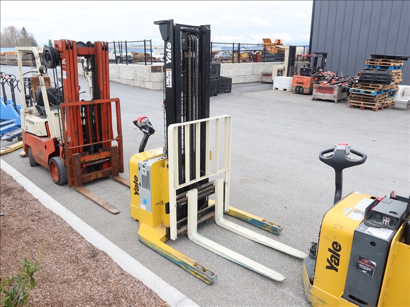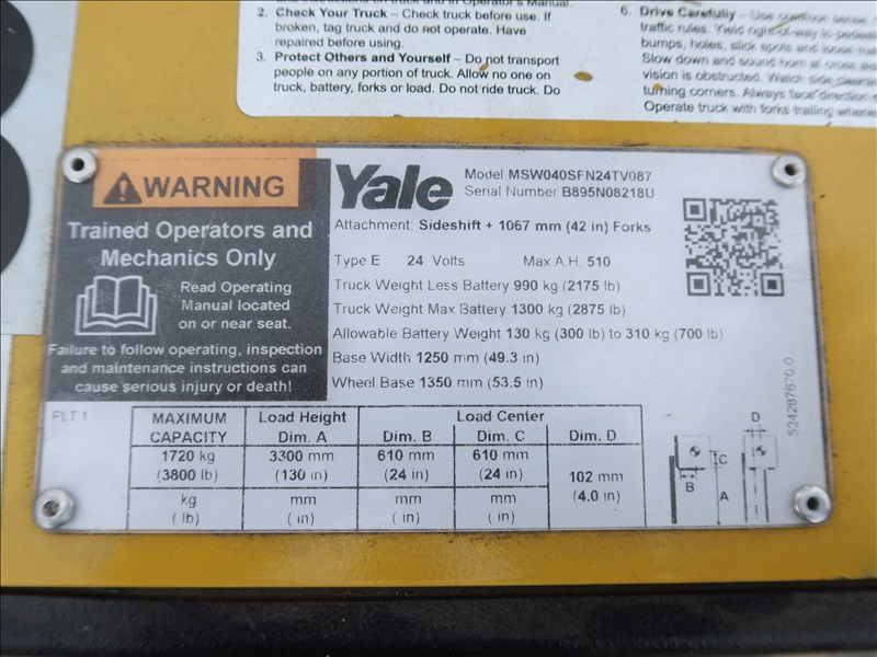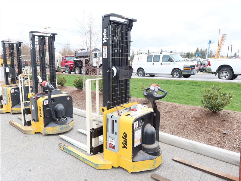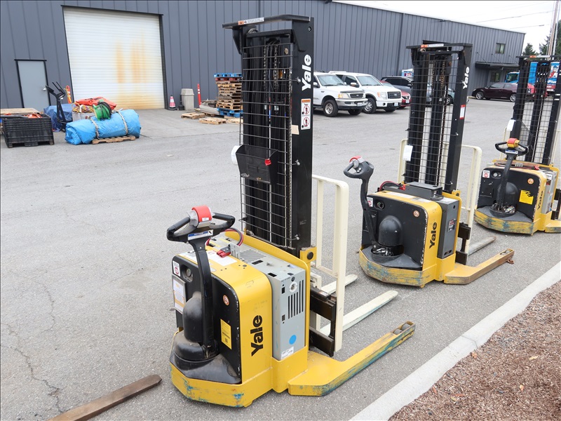 3,800 LB CAP ELECTRIC/HYDRAULIC PALLET STACKER, SIDE SHIFT, 24V, HOUR METER READS: 243