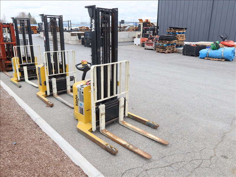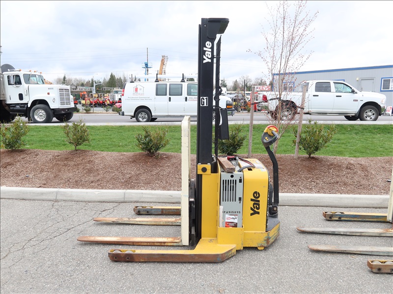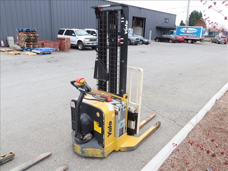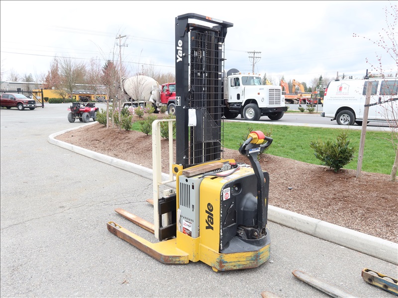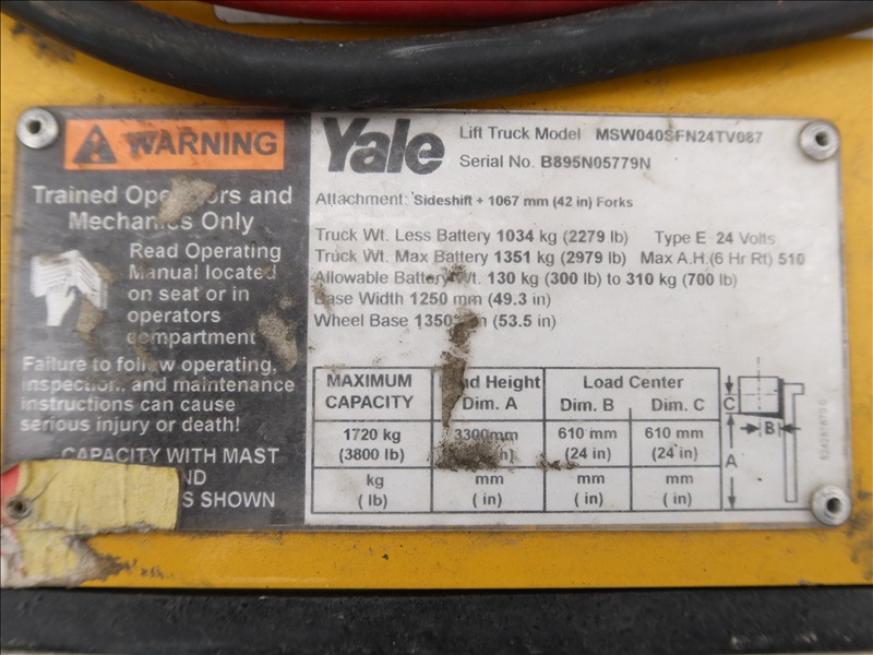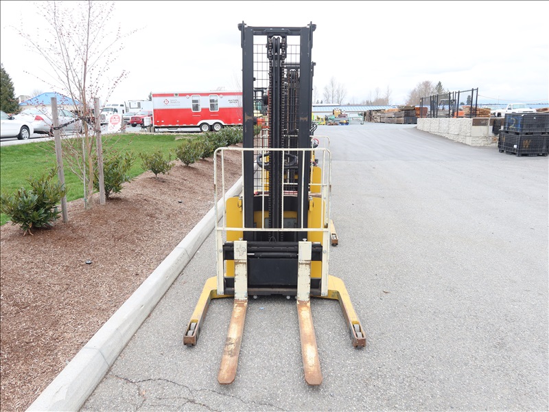 3,800 LB CAP ELECTRIC/HYDRAULIC PALLET STACKER, SIDE SHIFT, 24V, HOUR METER READS: 1,071