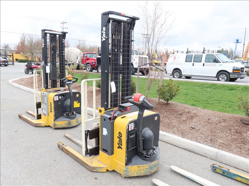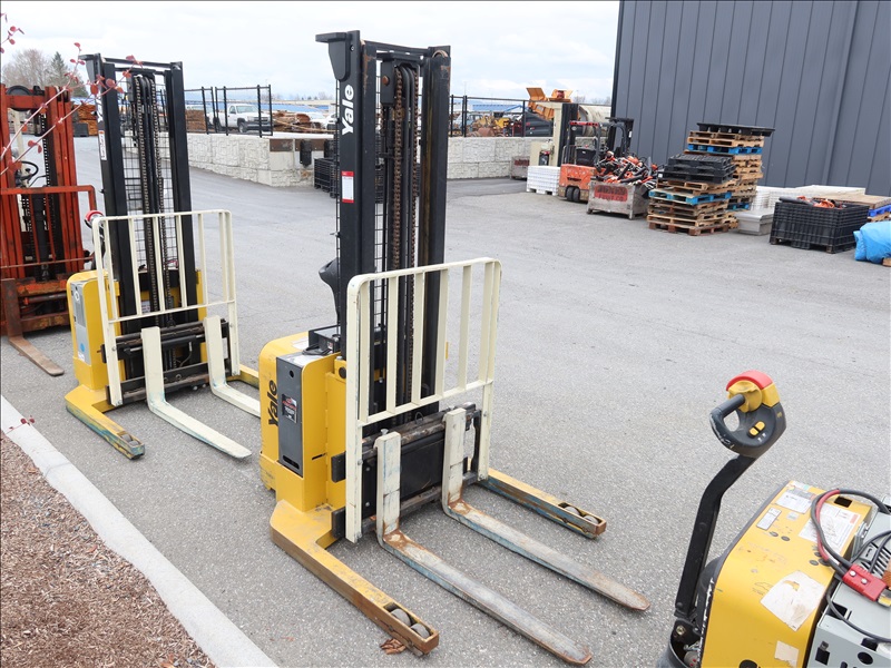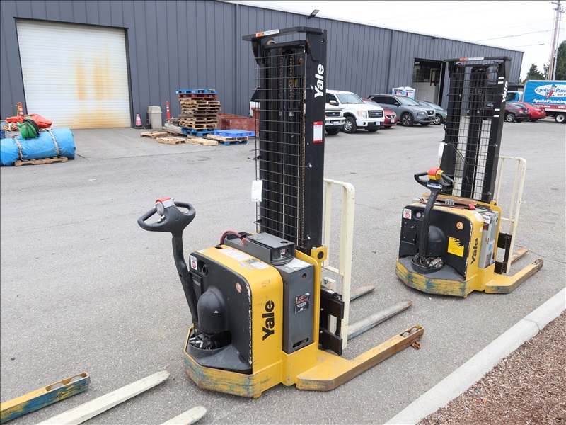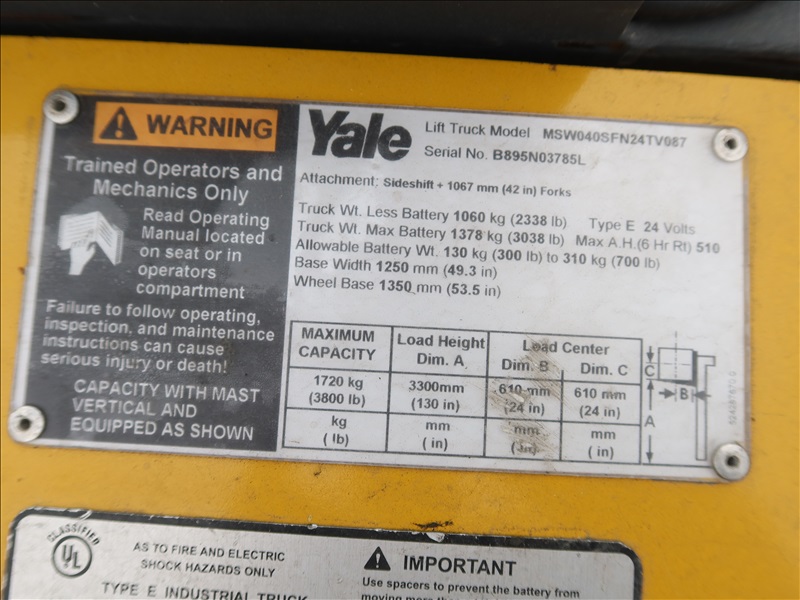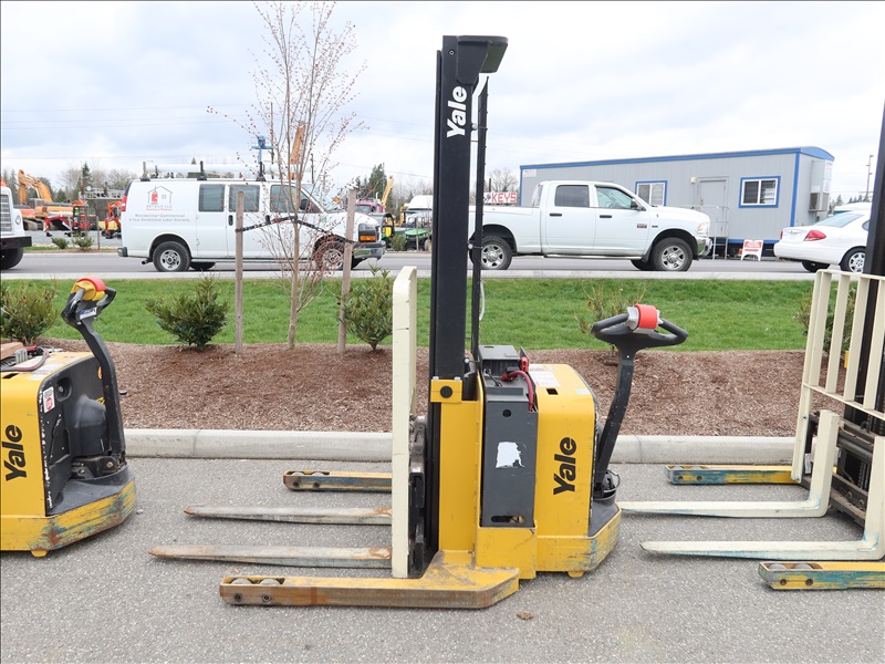 3,800 LB CAP ELECTRIC/HYDRAULIC PALLET STACKER, SIDE SHIFT, 24V, HOUR METER READS: 1,068