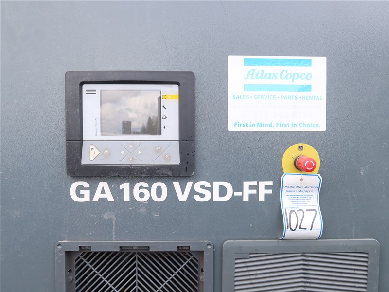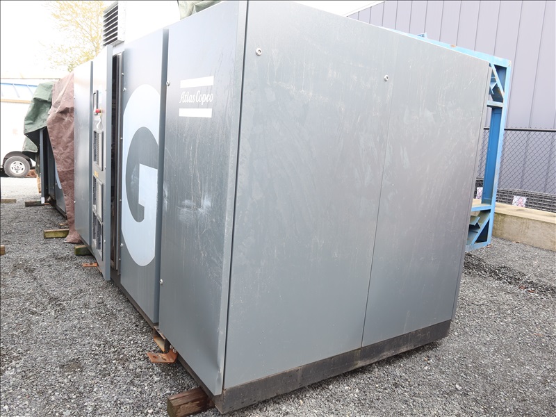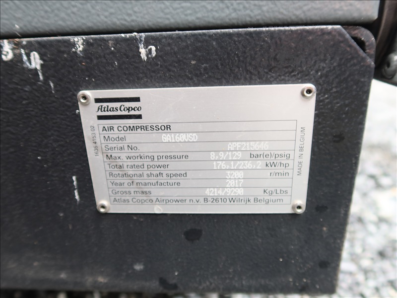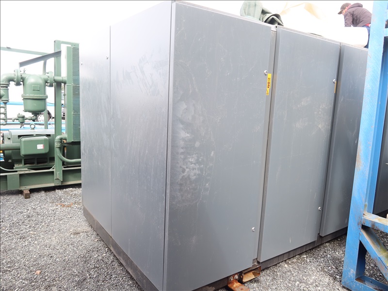 SKID MOUNTED ROTARY SCREW AIR COMPRESSOR, 236 HP, 129 PSI, DIGITAL CONTROLS, FORK POCKETS, HOURS UNKNOWN (*NO REMOVAL BEFORE THURSDAY, APRIL 18TH)