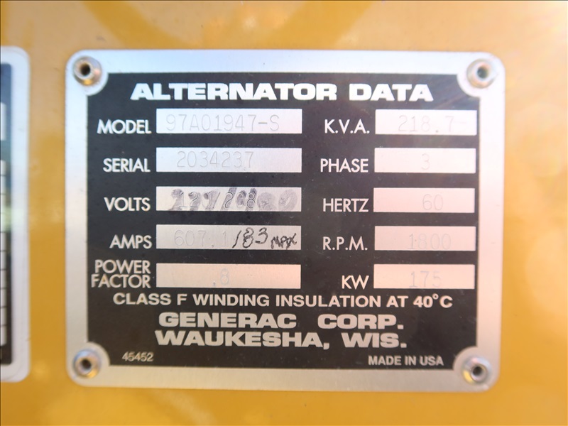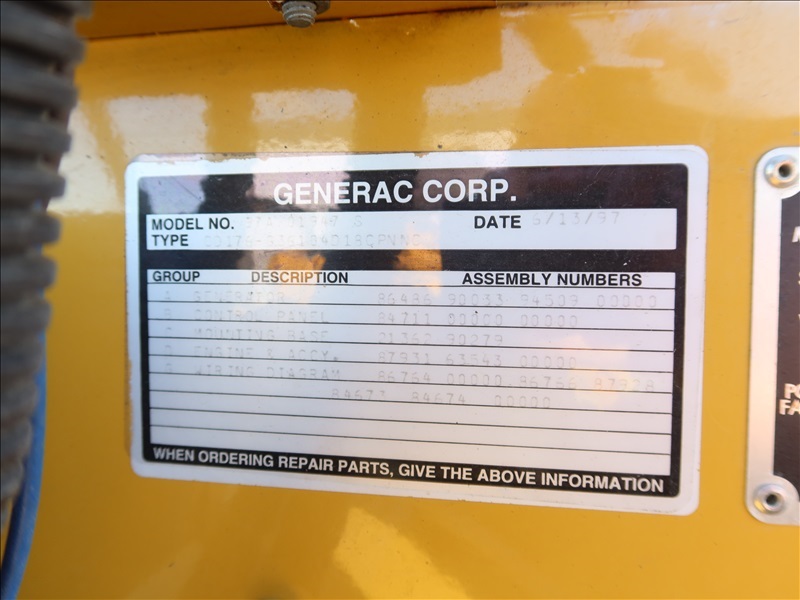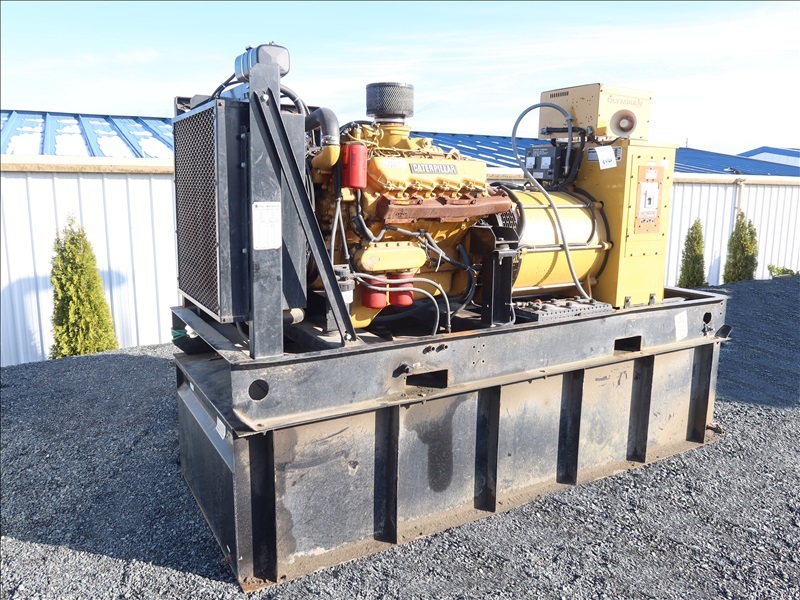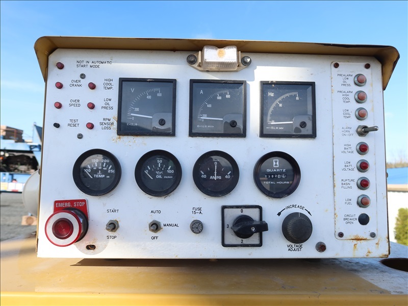 SKID MOUNTED GENERATOR W/CAT 3208 8 CYL DIESEL ENGINE, OLYMPIAN CONTROLS, NEWCO FAB 89464E CLOSED TOP DIKE GENERATOR BASE, 240/480/600V, HOUR METER READS: 702