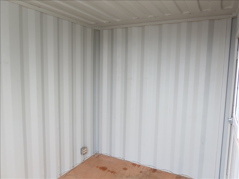 9'L X 88"W X 98"H PORTABLE OFFICE CONTAINER W/DOUBLE SWING END DOORS, MAN DOOR, WINDOW FORK POCKETS, PUCK LOCK BRACKET, WIRED FOR POWER, 110V (NO REMOVAL BEFORE THURSDAY, APRIL 18TH)