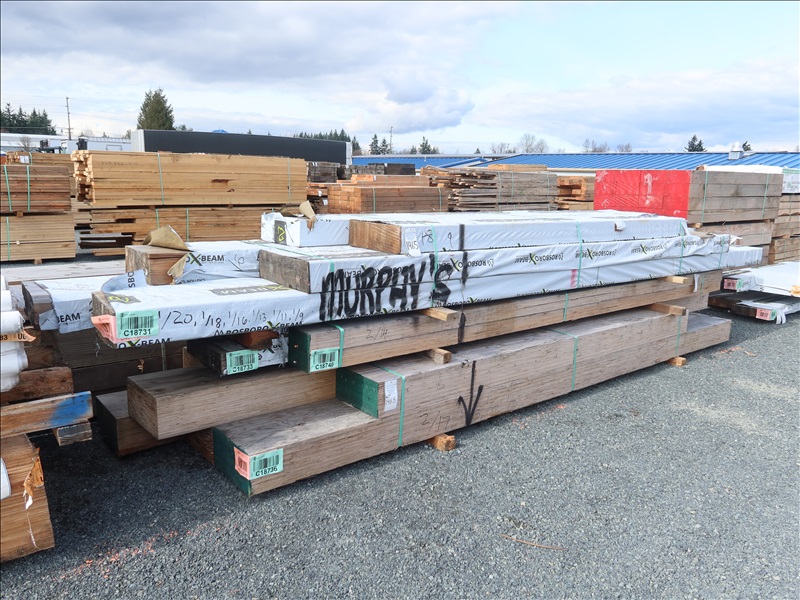 LOT, ASSORTED DIMENSION GLULAM LUMBER AT VARIOUS LENGTHS FROM APPROX 9' - 19'
