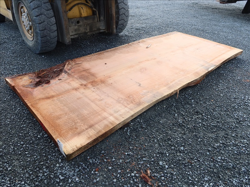 2-1/2" X 99" 2-YEAR AIR DRY LIVE EDGE REDWOOD SLAB (LARGE END 45", SMALL END 42", MEASUREMENTS ARE APPROX)