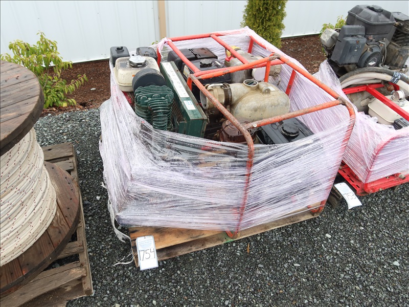 LOT, (2) GAS POWERED TRASH PUMPS & (1) ROLAIR GAS POWERED AIR COMPRESSOR ON THIS PALLET (NEEDS REPAIR)