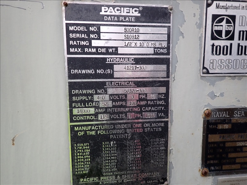 1/2"X10' HYDRAULIC SHEAR, BACK GAUGE