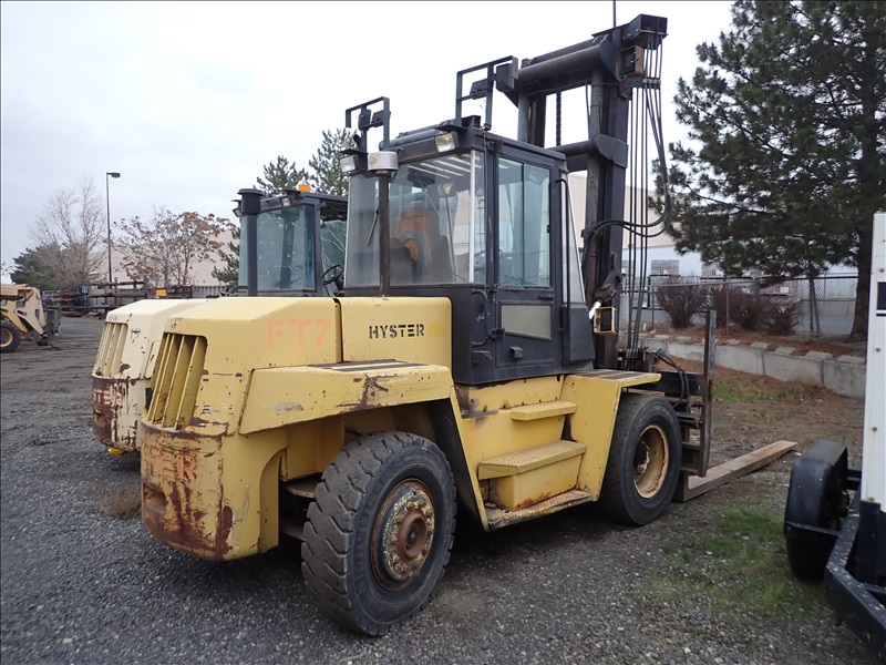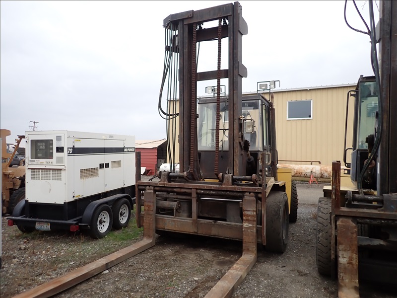 19,000 LB CAP. DUAL PNEUMATIC TIRED FORKLIFT, 212" 2-STAGE MAST, SIDE SHIFT, FORK POSITIONERS, DIESEL, 10' FORKS, CAB