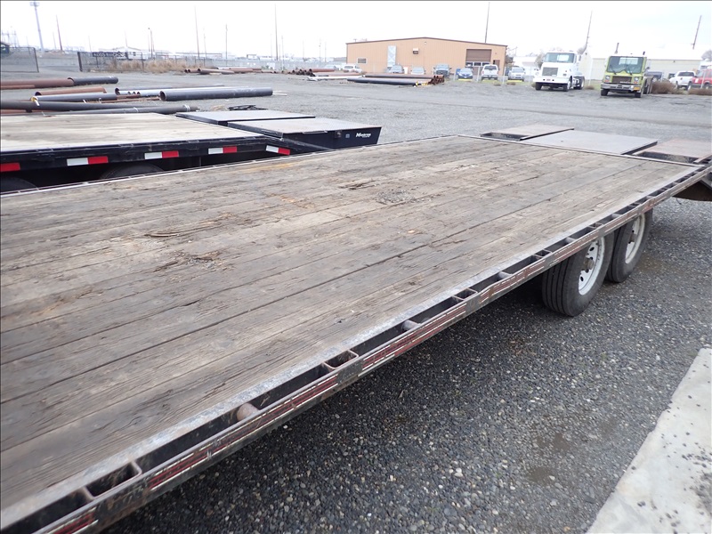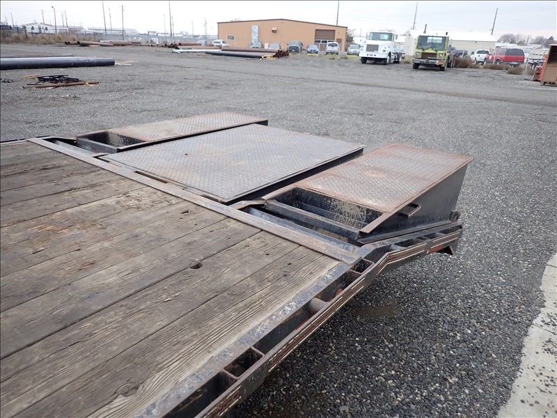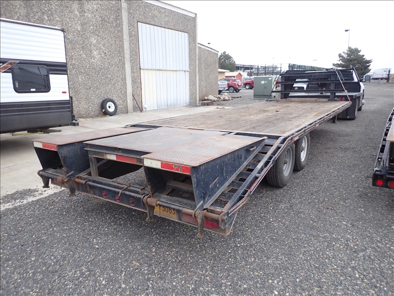 8'X25' T/A FLATBED GOOSENECK BEAVER TAIL TRAILER, 5' TAIL, FOLDING RAMPS