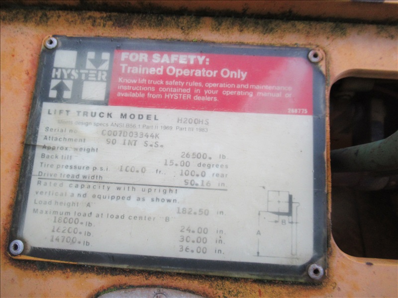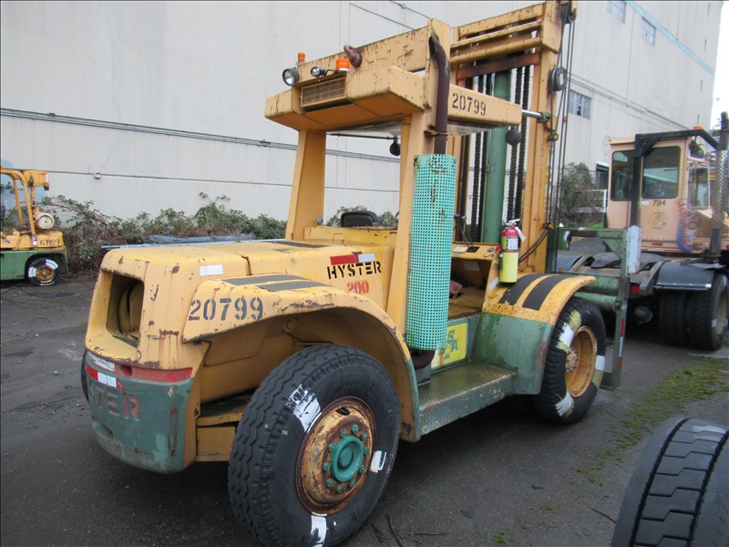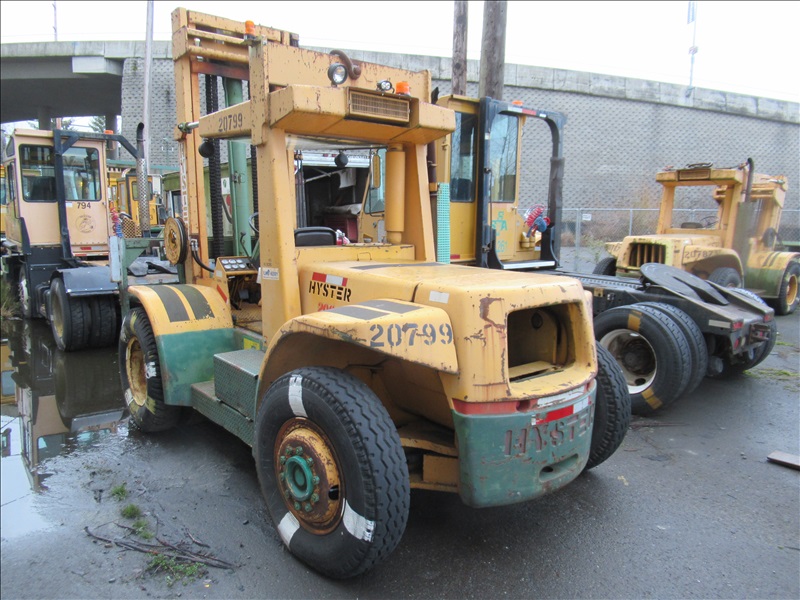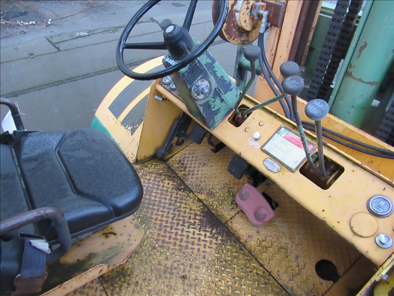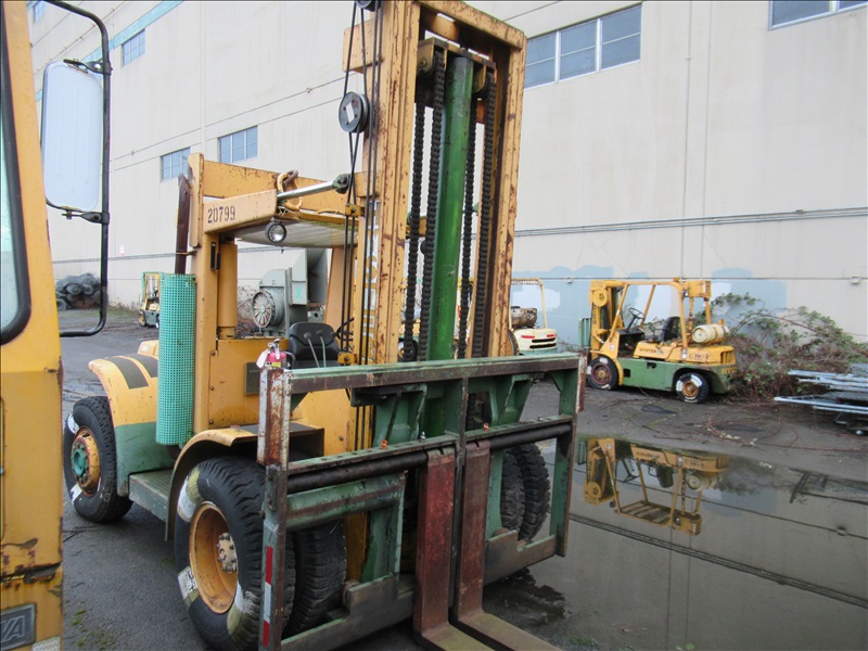 18,000 LB. CAP. DUAL PNEUMATIC TIRE FORKLIFT, PERKINS 6-CYL DIESEL ENGINE, MONOTROL, 2-STAGE MAST, SIDE SHIFT, 6' FORKS
