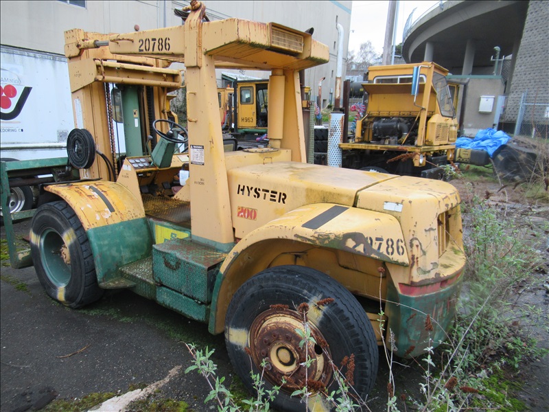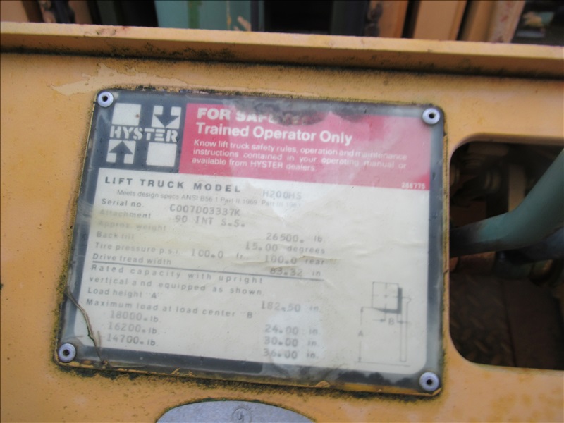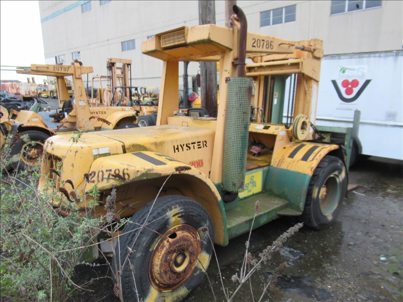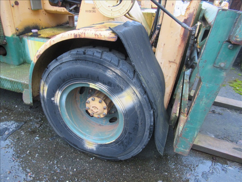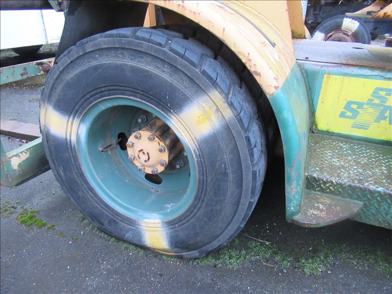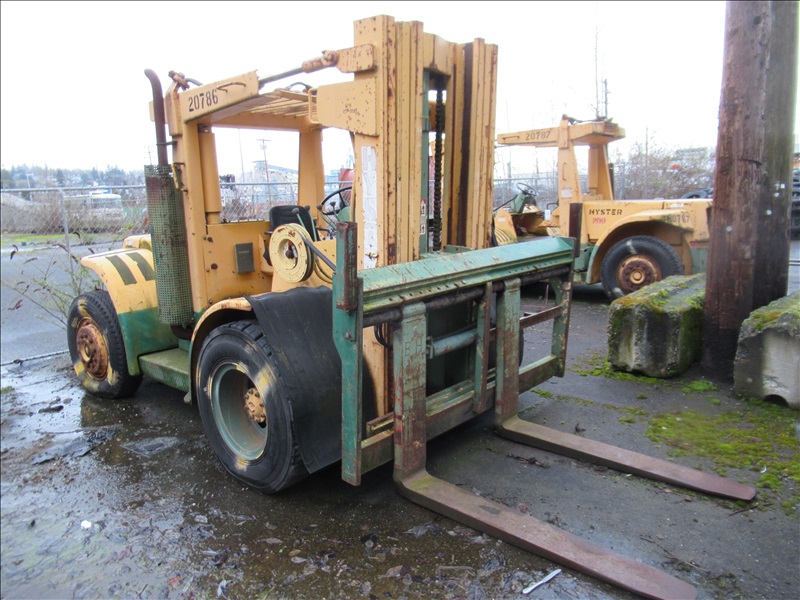 18,000 LB. CAP. DUAL PNEUMATIC TIRE FORKLIFT, PERKINS 6-CYL DIESEL ENGINE, MONOTROL, 3-STAGE MAST, SIDE SHIFT, 6' FORKS