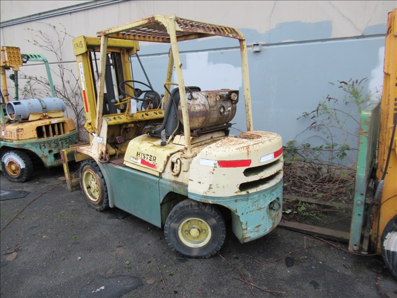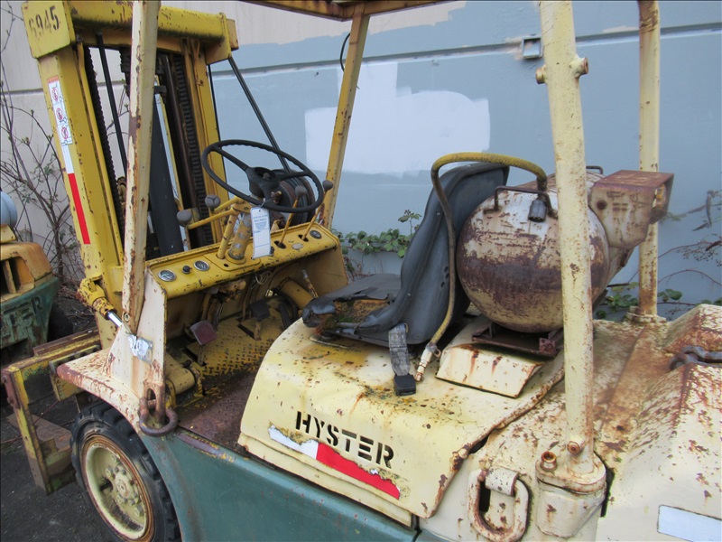 6,000 LB. CAP. CUSHION TIRE FORKLIFT, FORD 4-CYL PROPANE ENGINE, SHUTTLE TRANSMISSION, 3-STAGE MAST, SIDE SHIFT (TURNS OVER BUT DOESN'T START, BAD PROPANE)