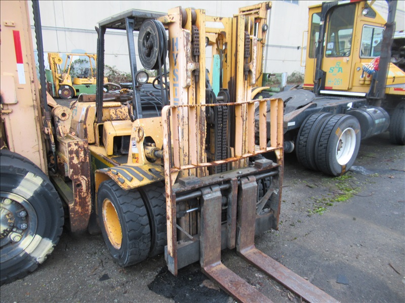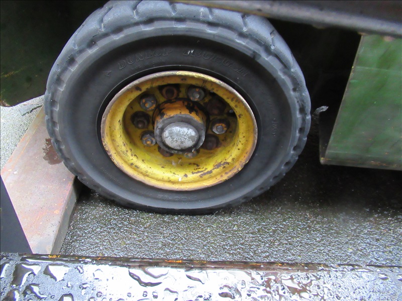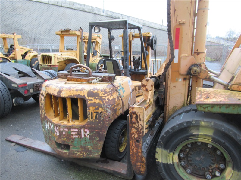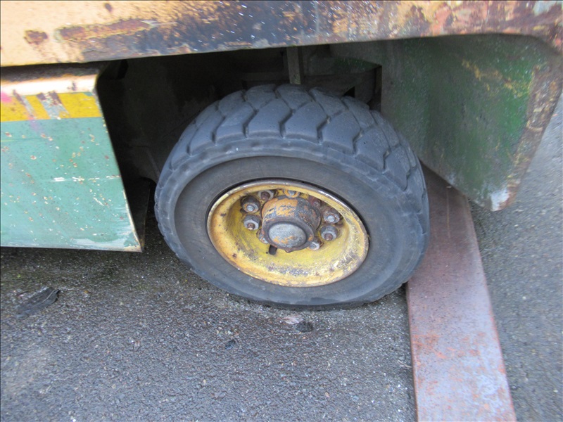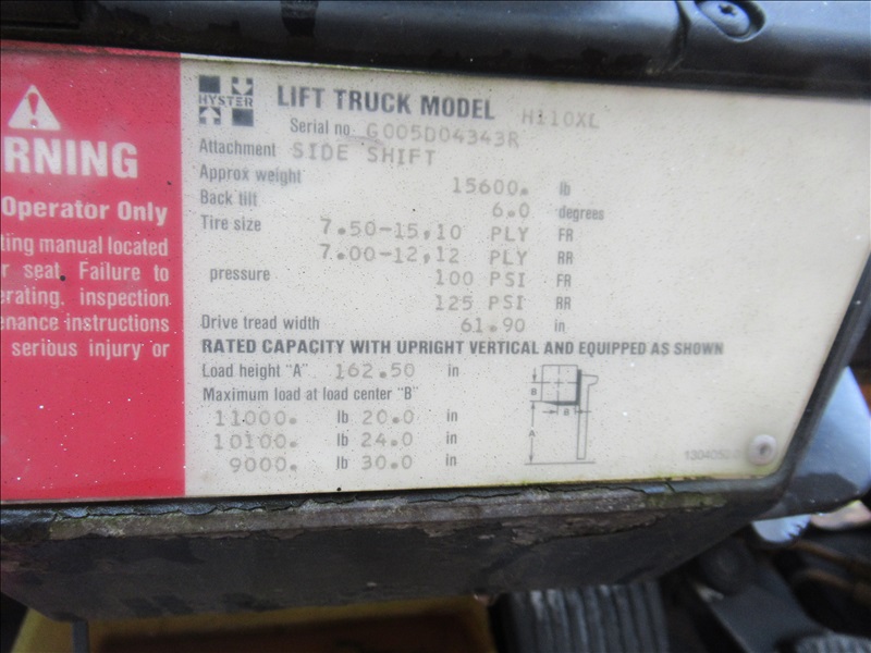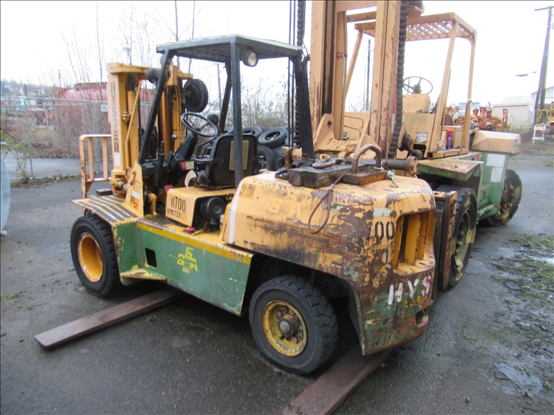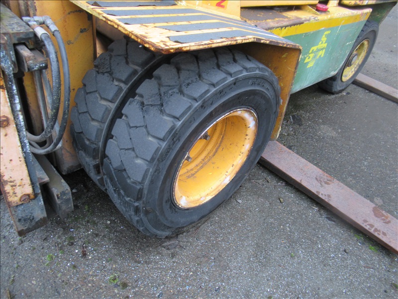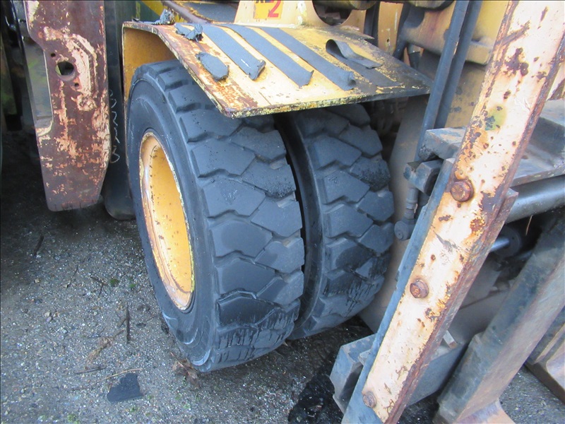11,000 LB. CAP. DUAL PNEUMATIC TIRE FORKLIFT, PERKINS DIESEL ENGINE, SHUTTLE TRANSMISSION, 3-STAGE MAST, SIDE SHIFT (BAD WATER PUMP, BROKEN MOTOR)