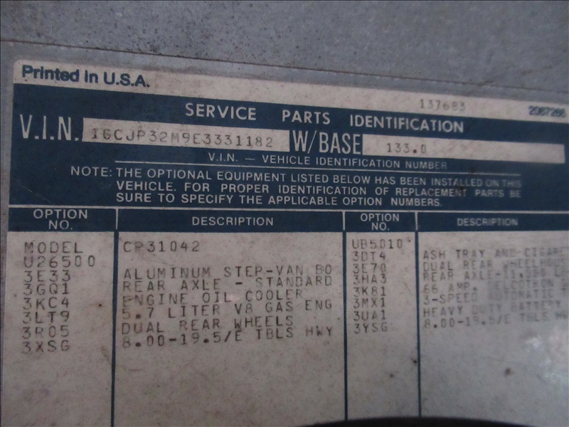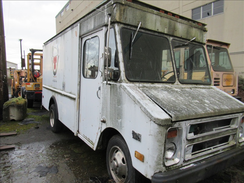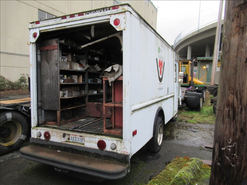 13' STEP VAN SERVICE TRUCK, V8 GAS ENGINE, AUTO TRANSMISSION, ROLL UP DOOR (RUNS BUT GAS IS BAD)