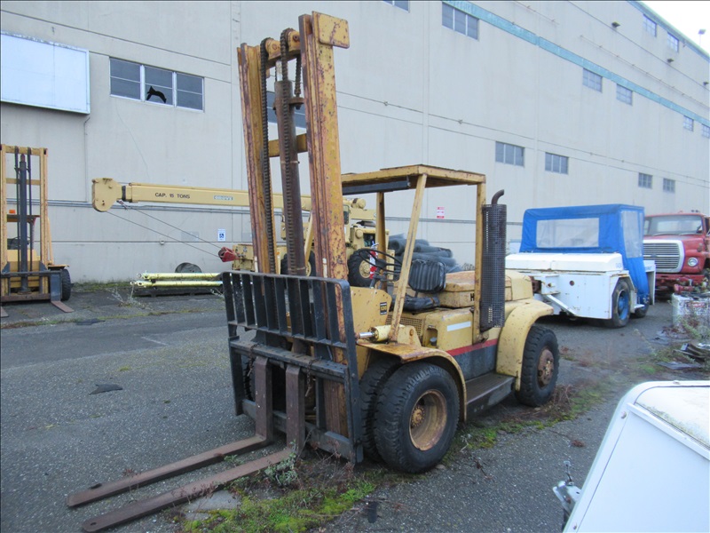 13,000 LB. CAP. DUAL PNEUMATIC TIRE FORKLIFT, 4-CYL DIESEL ENGINE, SHUTTLE TRANSMISSION, 123" 2-STAGE MAST