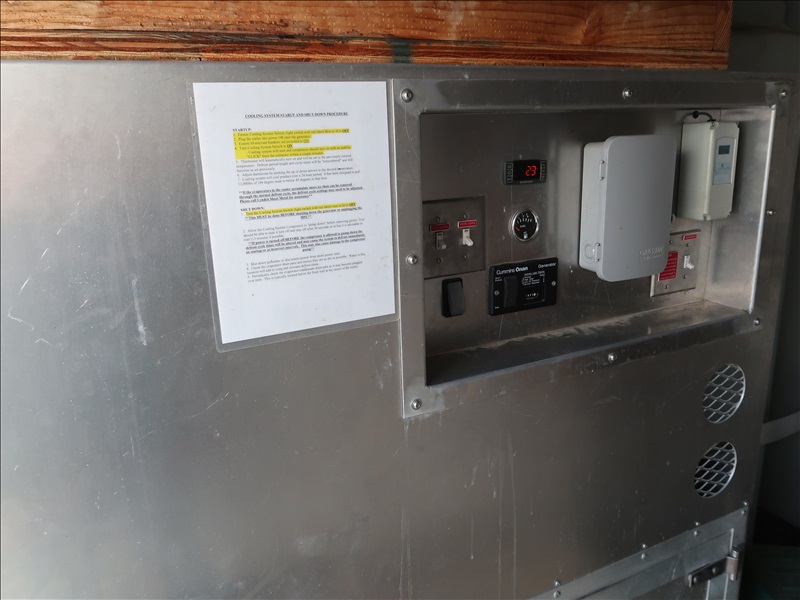 T/A MPU MOBILE PROCESSING TRAILER, (2) BOHN 4-FAN EVAPORATORS, 94"W X 164"L COOLING ROOM, DRESSING ROOM, (2) ELECTRIC WINCHES W/PENDANT CONTROLS, CARDINAL 205 DIGITAL WEIGHT INDICATOR, CUMMINS ONAN 20KW COMMERCIAL SD GENERATOR, 300 GAL POLY WATER TANK, RINNAI RL49 WATER HEATER, GRUNDFOS WATER PUMP, 75 GAL DIESEL FUEL TANK, INSTANT PROPANE HOT WATER, HR METER READS: 3863, S/N: 1T9HBAECX9F8333900