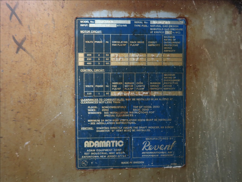 NATURAL GAS OVEN, 460V, 60 HZ, 556,000 BTU