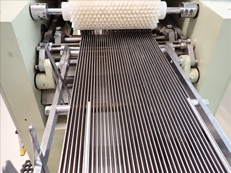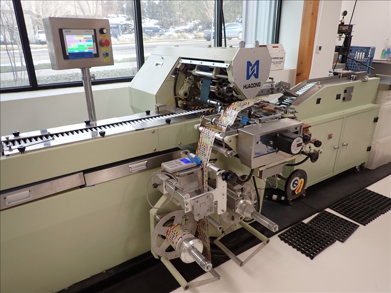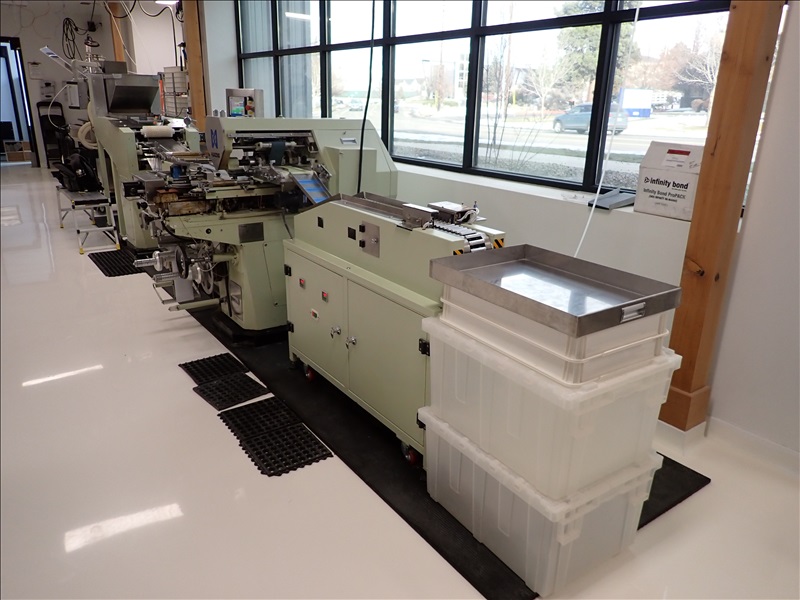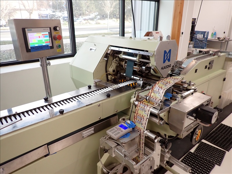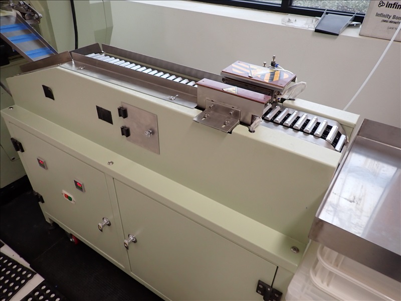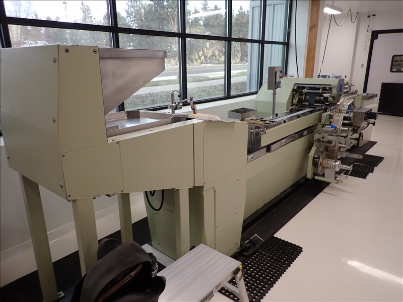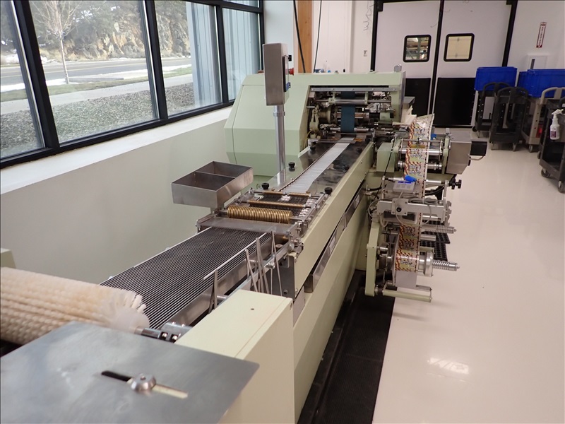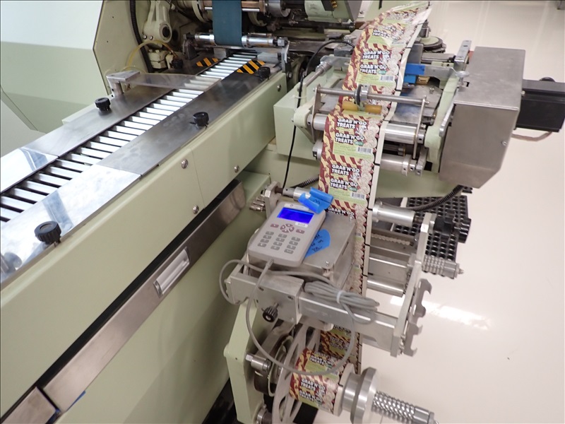 AUTOMATIC CANDY/TABLET ROLL WRAPPER, S/S FEED HOPPER, VIBRATORY FEEDER, FLIPPER/SINGULATOR, 37-LANE TRANSFER CONVEYOR, WRAPPER, MARKEM-IMAJE CODER, GLUER, OUTFEED CONVEYOR, HEAT APPLICATOR, S/S LANDING TABLE, SIEMENS SMART LINE TOUCH CONTROLS