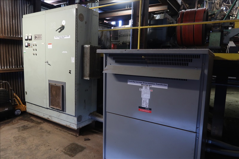 300 HP DC CARRIAGE DRIVE W/300 HP/1,150-2,000 RPM/500V DC MOTOR TO FALK 465A2-5 30 HP RATED REDUCER, 1,170 RPM INFEED, 98 RPM OUTFEED, BUMPERS, IES SAFTRONICS KDC 12-1250-4 DC CARRIAGE DRIVE W/PARKER INTEGRATOR 590+ SERIES 2 DIGITAL 300 HP DRIVE, 440 KVA ISOLATION TRANSFORMER, SPARE 300 HP DC MOTOR