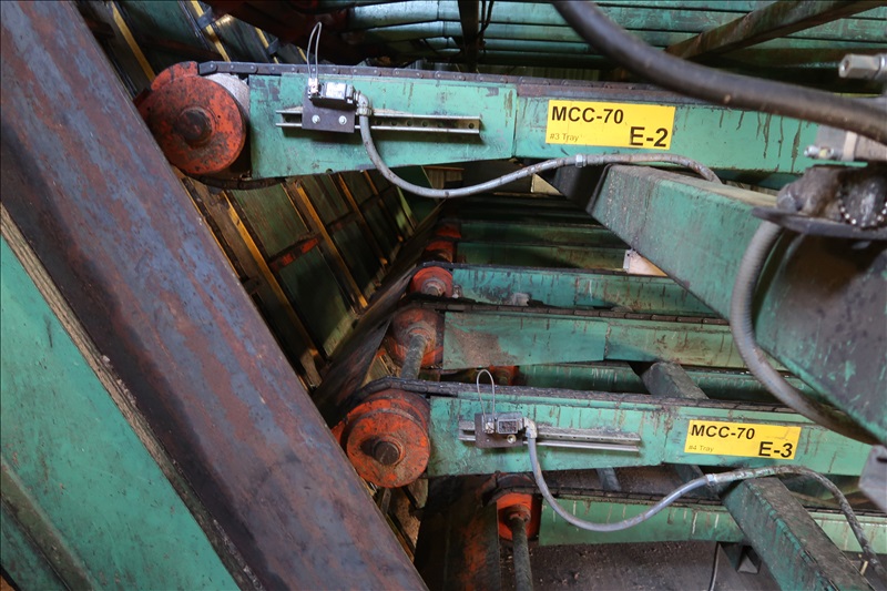 20' RH 5-TRAY SAWMILL SORTER, 7-TRAY 81X CHAIN W/SKK 5 HP/45 RPM DRIVE, APPROX. 30' 9-STRAND 81X INCLINE & DECLINE TRANSFERS, CONTROLS & ELECTRICS