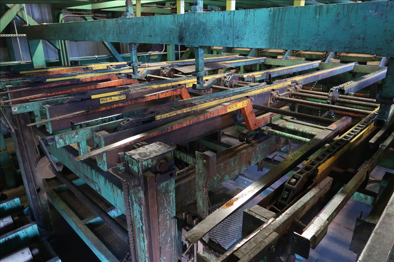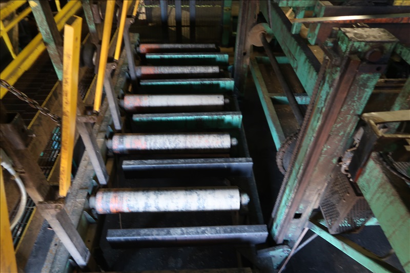20' RH MECHANICAL SAWMILL STACKER W/60" 6-ARM LOWERING HOIST, (7) LUMBER PLACING ARMS, APPROX. 20' 2-SECTION 5-STRAND INFEED TRANSFER, APPROX. 60"X50' OUTFEED ROLLCASE W/APPROX. 20' 5-STRAND H78 JUMP TRANSFER, (2) SKK GEARHEAD MOTORS