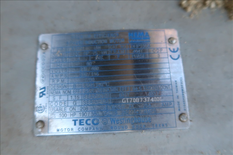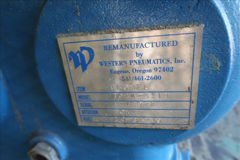 HIGH PRESSURE ROTARY LOBE BLOWER W/TECO 100 HP/1,780 RPM/404T FRAME MOTOR, S/N:A78922, UNIVERSAL SILENCER RD-10, S/N:72-417