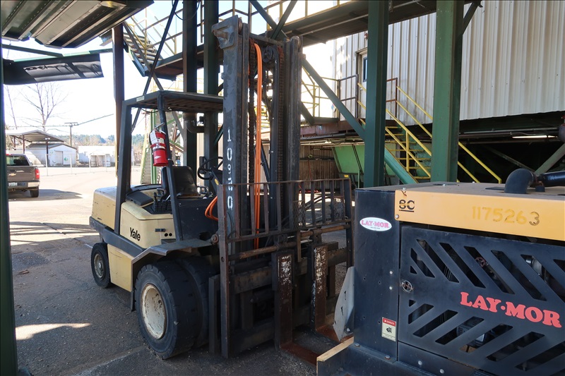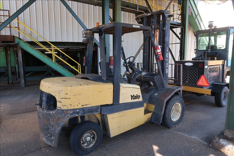 11,000 LB. CAP. DIESEL FORKLIFT, 197" 2-STAGE MAST, FORK PLACERS, SIDE SHIFT, 60" FORKS, DUAL SOLID TIRES