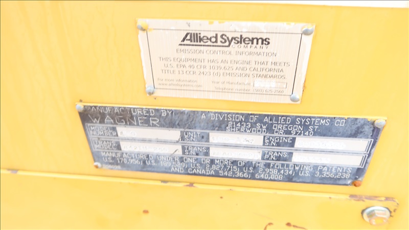 2WD NEW GENERATION 45-TON LOG STACKER (WAS IN A FIRE & RECONDITIONED BY ALLIED WAGNER & OTHERS. REBUILD LIST AVAILABLE UPON REQUEST), CUMMINS TIER IV DIESEL ENGINE, AUTOMATIC POWER SHIFT TRANSMISSION, ROTATING OPERATOR PLATFORM, WAGNER SMART SCREEN, DUAL PLANETARY REDUCTION AXLES, FORCE COOLED WET BRAKES, AUTO FIRE SUPPRESSION SYSTEM, GROUND LEVEL SERVICE BAY, S/N:L9139 (NOTE: THERE IS A $460,000 STARTING BID ON THIS ITEM. AN APPOINTMENT TO ITEM IS LOCATED AT ALLIED SYSTEM CO. IN SHERWOOD, OREGON. PLEASE CONTACT CHAD FARRIS AT 503-939-7460 FOR AN APPOINTMENT TO PREVIEW) SERIAL NUMBER: L9139