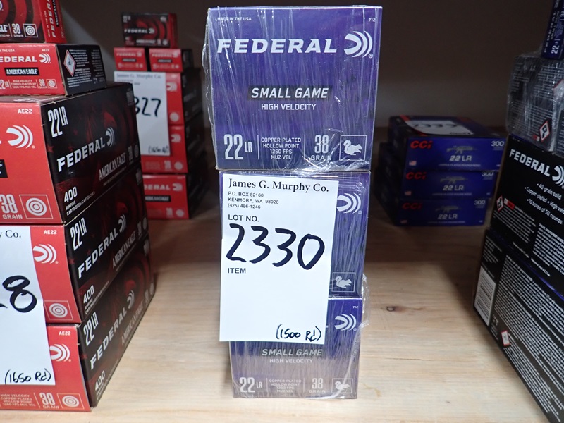 LOT, (1,500 +/-) ROUNDS OF FEDERAL SMALL GAME .22 LR HIGH VELOCITY 38 GR HOLLOW POINT AMMO