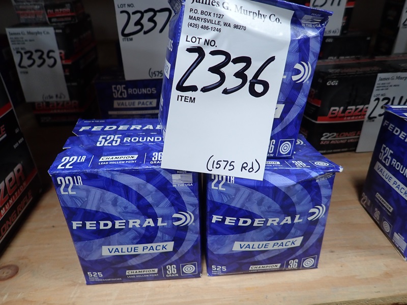 LOT, (1,575) ROUNDS OF FEDERAL CHAMPION HOLLOW POINT .22 LR 36 GR AMMO