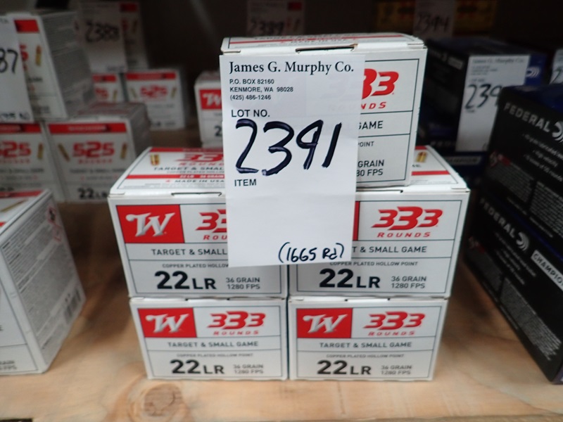 LOT, (1,665 +/-) ROUNDS OF WINCHESTER TARGET & SMALL GAME .22 LR HOLLOW POINT AMMO