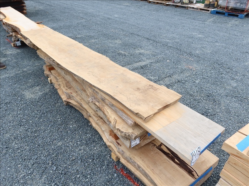 LOT, (5) 1-1/2" X 14" X 140" LIVE EDGE MAPLE SLABS (MEASUREMENTS ARE APPROX)