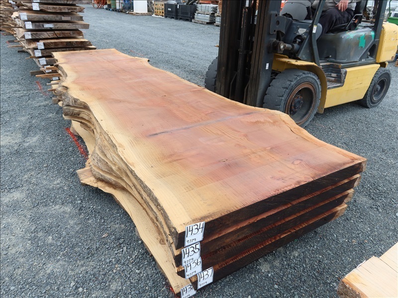2-1/2" X 154" 5-YEAR AIR DRY LIVE EDGE REDWOOD SLAB (LARGE END 46", SMALL END 32", DAMAGED IN CUTTING)