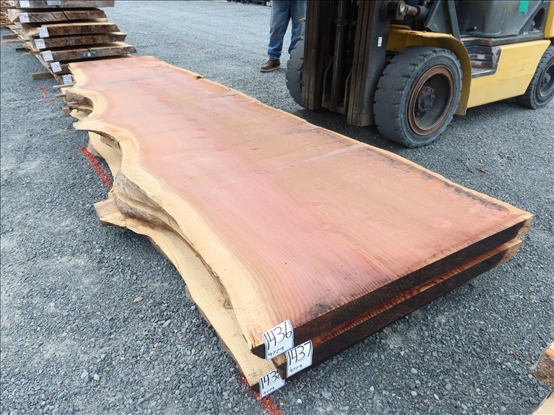 2-1/2" X 154" 5-YEAR AIR DRY LIVE EDGE REDWOOD SLAB (LARGE END 42", SMALL END 29")